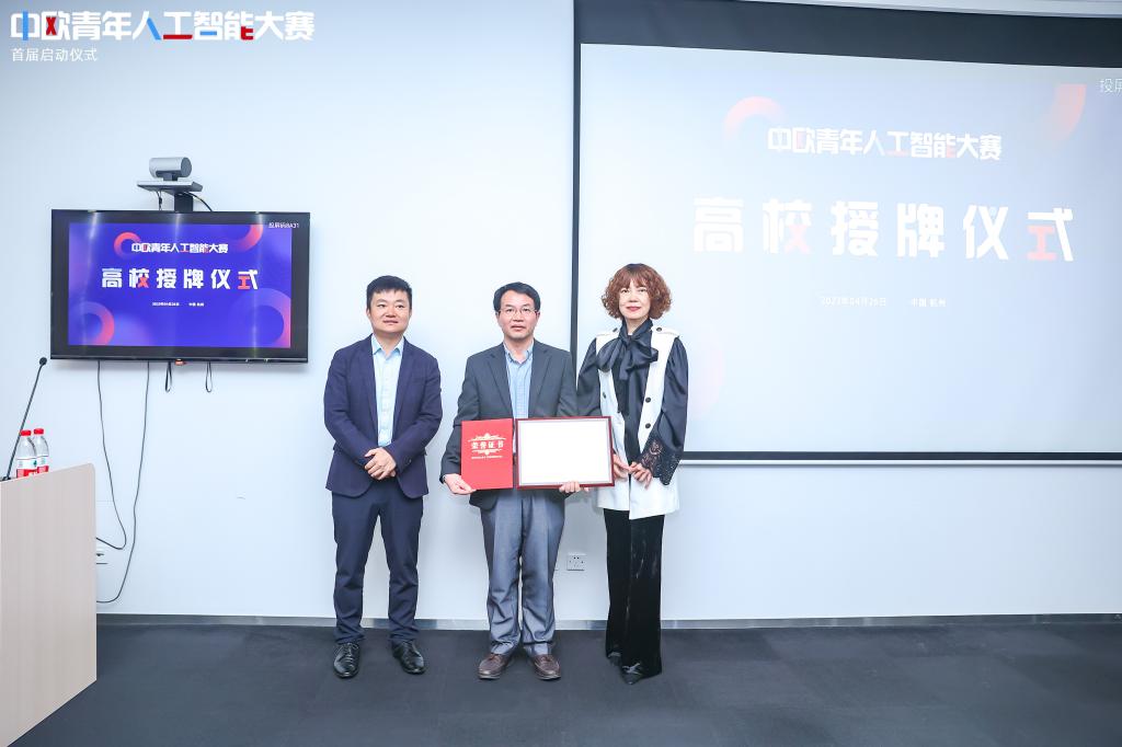 beat365官网beat365中文官方网站参加了本次启动仪式。在仪式上,beat365中文官方网站教学院长蔡长龙教授接受了大赛组委会颁发的首届中欧青年人工智能大赛战略合作伙伴铜牌和证书。此次参加中欧青年人工智能大赛启动仪式,是beat365官网深入贯彻落实《国务院关于印发新一代人工智能发展规划的通知》、《高等学校人工智能创新行动计划》等文件精神的一项具体举措,也是beat365官网积极融入国际人工智能领域的重要措施,学院将充分发挥自身优势,积极参与该项赛事。
