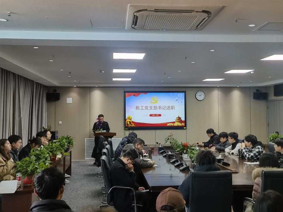为深入学习贯彻习近平新时代中国特色社会主义思想和党的二十大精神,进一步推动全面从严治党向基层延伸,强化基层党组织书记管党治党意识和履职能力,提升学校基层党建工作质量。2024年12月31日,beat365中文官方网站在教8-613召开党支部书记述职大会,院党委书记蔡长龙,党委副书记、纪委书记梁伟樯,副院长刘雪莲、吴杰,辅导员王国栋出席会议,会议由组织员、教工党支部书记陈丁主持。