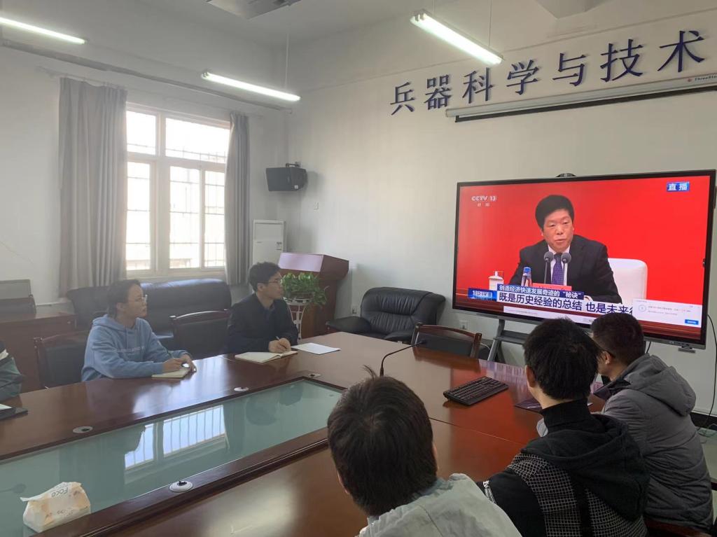 2021年11月12日上午10时,中共中央举行新闻发布会,介绍党的十九届六中全会精神,beat365中文官方网站举行了视频观看学习讨论,会议由郭永春院长主持,学院教工支部和学生支部全体党员参加。