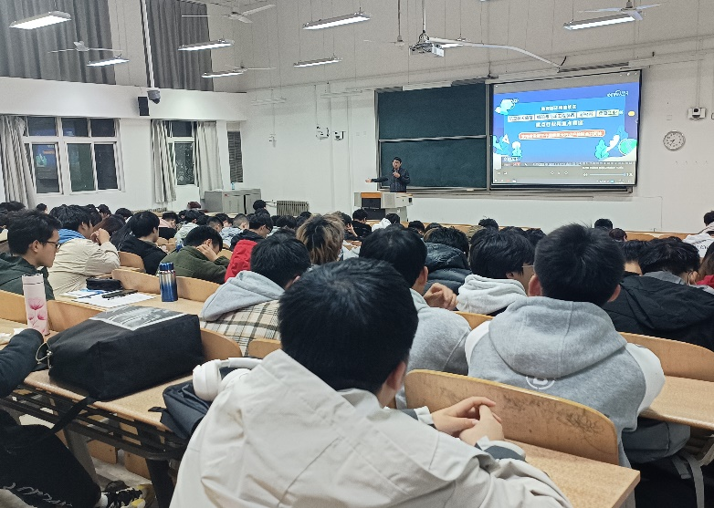 首先,由王晨浩老师为同学们进行青年人才政策宣讲,王晨浩老师向同学们介绍了吴江经济开发区,展示了当下良好的经济发展势态以及创新创业环境;同时,王晨浩老师从生活保障、安居保障、交流保障、创业扶持四个方面向同学们介绍了柯桥区的高校毕业生引聚政策。