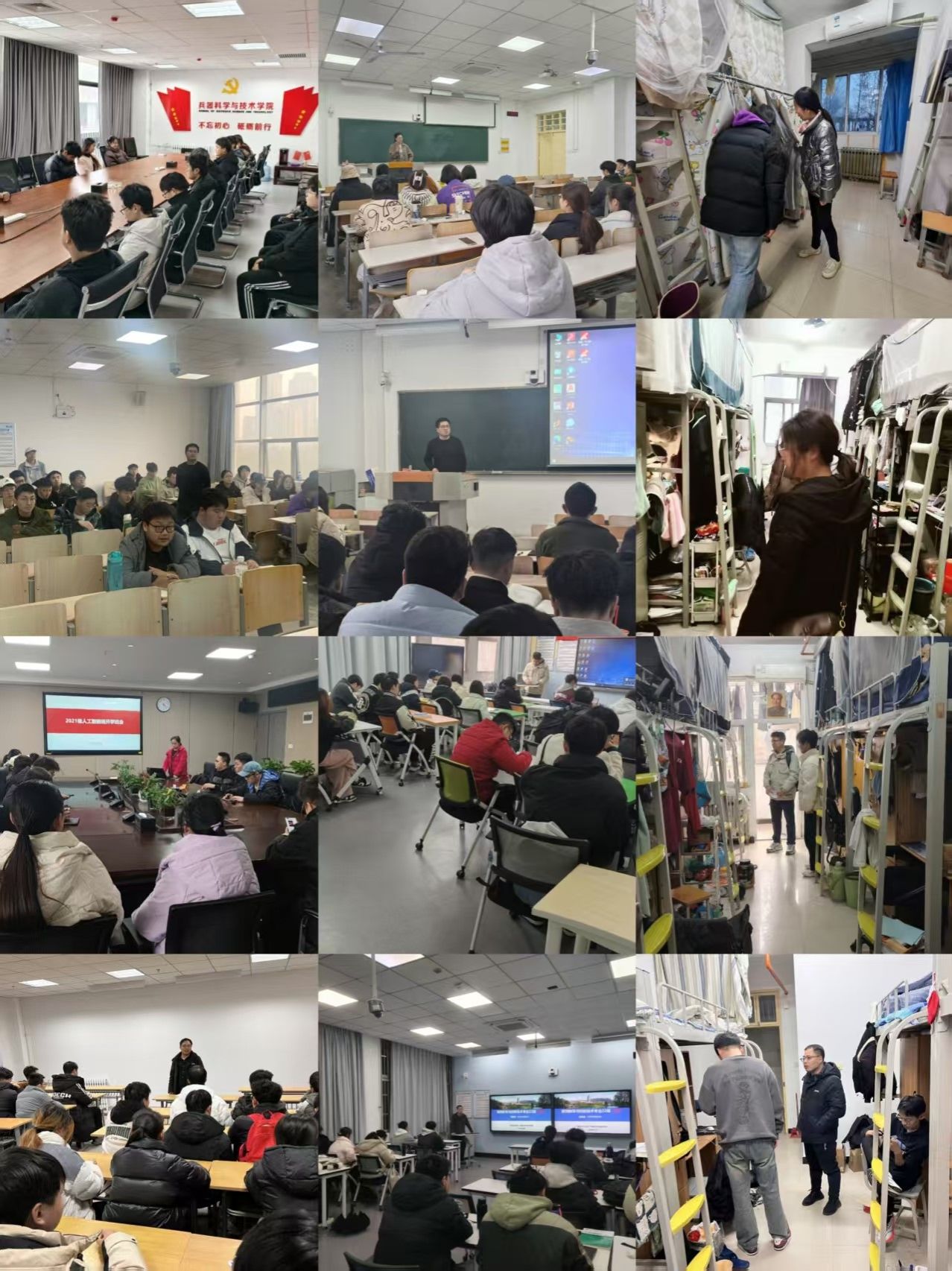 21级、22级、23级各班班主任深入学生宿舍,近距离沟通了解学生学习生活方面的情况,面向学业困难学生开展重点帮扶,召开开学班会,介绍学期课程,了解学生假期思想认识,进行学习动员。