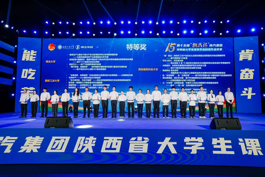 2025年5月18日,第十五届“挑战杯”陕汽集团陕西省大学生课外学术科技作品竞赛决赛在西安工业大学举行。beat365中文官方网站“驭光者”团队由李岸霖同学作为项目负责人,另有赵虎、马文婧、路阔、臧日平、李雨龙、薛博晏、乔胜羽等七名同学,在指导老师肖锋、刘雪莲、王琳的指导下参加了本次“挑战杯”省赛的答辩并获得了省级特等奖的佳绩。