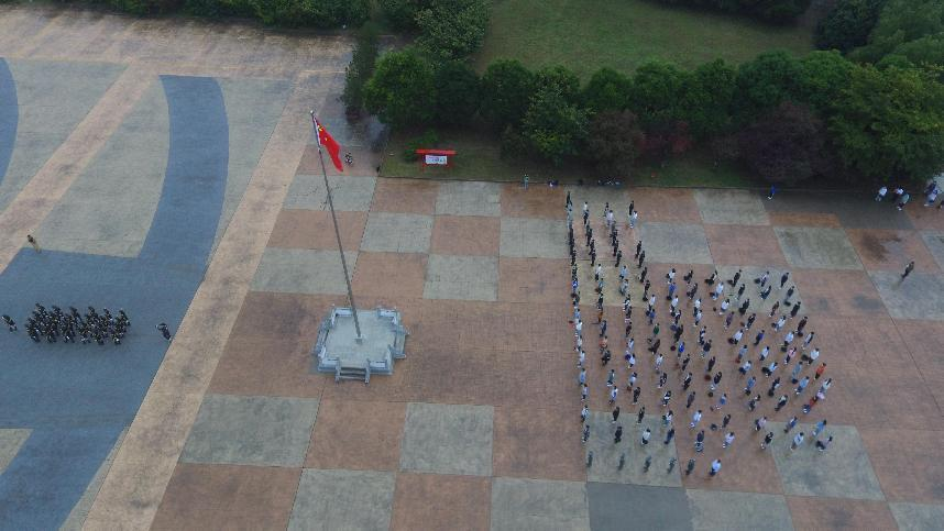 10月1日早7点,beat365中文官方网站组织学生在经纬广场观看升旗仪式。