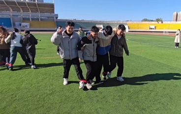 本次趣味运动会先后开展了四项趣味盎然的比赛项目,“南泥湾大生产”搬运赛、“勇炸敌堡”投沙包竞技赛、“红军草地行”团队挑战赛以及“红军长征”接力赛。“南泥湾大生产”搬运赛作为运动会的开场大戏,一上来就迅速点燃了现场的热情,同学们纷纷为各自学院加油鼓劲,呐喊声此起彼伏。 “勇炸敌堡”投沙包竞技赛更是将欢声笑语洒满了整个田径场,现场气氛热烈非凡。在“红军草地行”团队挑战赛中,同学们喊着响亮的口号,踏着整齐的步伐,肩并肩、心连心,奋勇向前,展现了团队的默契与力量。而最后的“红军长征”接力赛则将运动会的氛围推向了高潮,参赛选手们全力以赴,争夺佳绩。