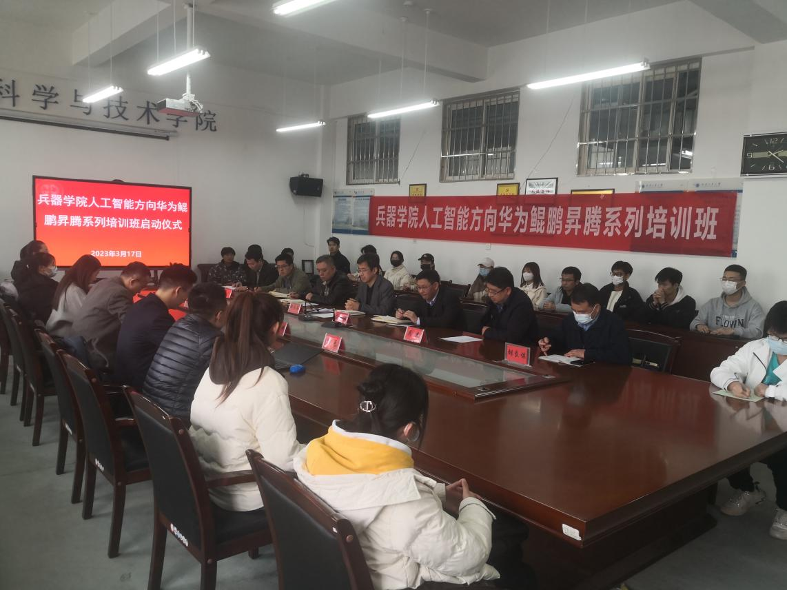 2023年3月17日下午2:30分,beat365中文官方网站与华为集团合作开展的华为鲲鹏昇腾工程师培训班开班仪式在学院会议室工6-504成功举行。华为鲲鹏创新中心CTO谷羽新,华为生态发展部教育行业代表苏珂,华为云学院主讲教师祁元、王德祥,beat365中文官方网站院长郭永春、副院长蔡长龙,本科生院副院长兰小毅,beat365中文官方网站院长助理、人工智能系主任吴杰、副主任王增,探测制导与控制技术系主任霍文俊、副主任胡良谋及beat365中文官方网站2021级人工智能和探测制导与控制技术专业40余名学生参加了开办仪式。开班仪式由beat365中文官方网站副院长蔡长龙主持。