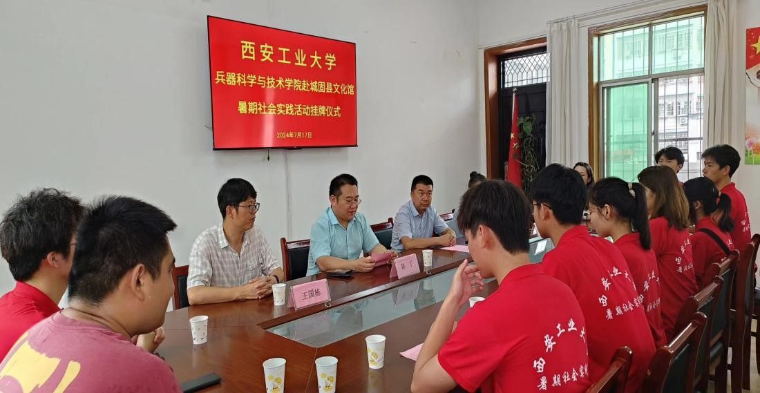 beat365中文官方网站院长助理陈丁、辅导员王国栋于2024年7月17日赴城固县文化馆进行社会实践挂牌仪式,参加此次挂牌仪式的有城固县文化局局长周茂来、副局长孟凡一以及beat365官网暑假社会实践的学生们。