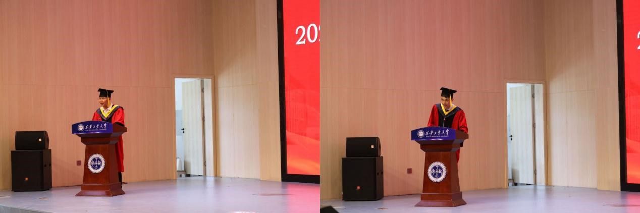 蔡长龙首先介绍了出席本次的学院领导及教师代表,梁伟樯宣读了学位授予决定。随后,本硕毕业生们依次上台,肖锋为每一位毕业生授予学位证书,拨穗正冠,并合影留念。仪式最后,蔡长龙寄语毕业生,希望各位毕业生前程似锦,大展宏图。学位授予仪式结束,所有毕业生依依不舍地与老师们告别,有序离场。